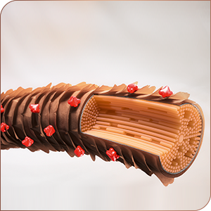 Damaged hair has imperfect cuticles and weakened protein structure. Metallic impurities and free radicals harm the hair surface. Hair feels dry, rough and the structure is weakened.